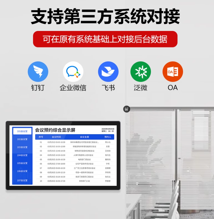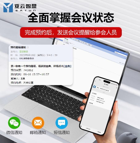 亚云智显会议预约系统的核心功能是在线预订会议室。员工可以通过系统实时查看会议室的空闲状态,并轻松完成预订。这一功能不仅减少了人工协调的时间,还避免了因信息不对称导致的会议室冲突。系统还能自动发送会议提醒,确保每位参与者都能准时参加会议,提高了会议的准时率和效率。