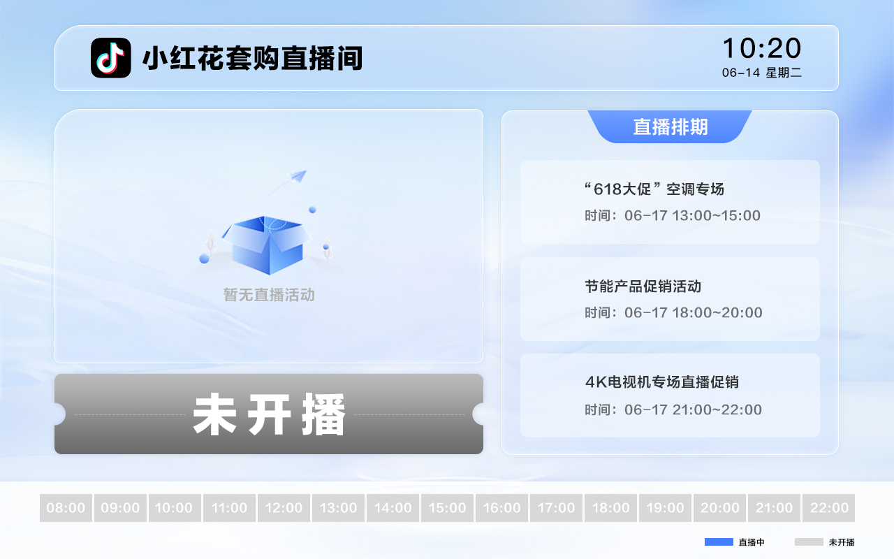 直播中常涉及多场景、多时段的内容切换(如不同嘉宾访谈、环节过渡),电子门牌可实时显示当前直播状态(如 “直播中”“准备中”“休息区”)、场次信息(如 “第 3 场:产品测评”),帮助团队内部高效协同,也让观众直观了解直播进度。