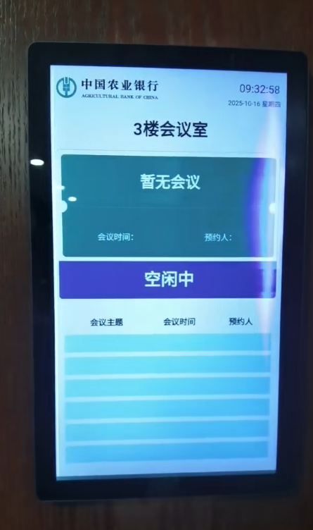 通过与企业微信、钉钉或Outlook日历的深度集成,门牌实时反映会议室的真实状态: